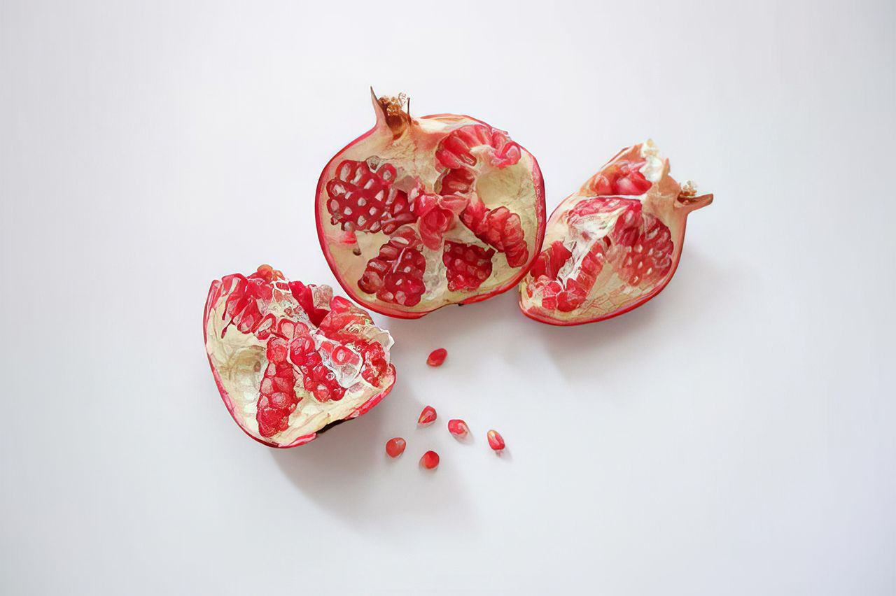 석류는 석류나무의 열매로, 둥근 형태와 두꺼운 붉은 껍질, 그리고 내부의 수많은 씨앗으로 잘 알려져 있습니다. 각 씨앗은 투명한 붉은 과육으로 둘러싸여 있어, 먹을 때 상쾌한 즙과 함께 씨의 아삭한 식감을 즐길 수 있습니다. 석류는 그 독특한 외관과 맛으로 인해 많은 문화권에서 풍요와 다산의 상징으로 여겨져 왔으며, 종교적, 문화적으로도 중요한 의미를 지니고 있습니다.