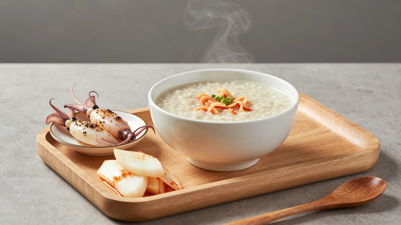 - 백김치: 시원하고 아삭한 식감이 뜨거운 죽과 대조를 이루며 입안을 깔끔하게 정리합니다.