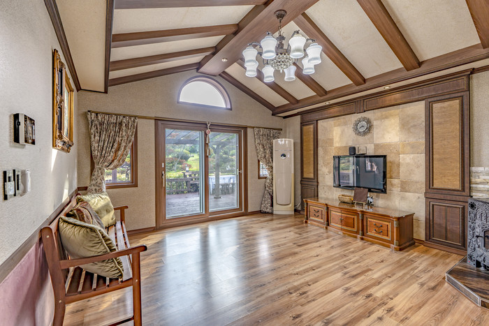 내부에는 넓은 거실과 주방, 침실, 욕실, 수영장, 스파 등 다양한 시설이 마련되어 있어 가족이나 친구들과 함께 즐거운 시간을 보낼 수 있습니다. 또한, 최신식 가전제품과 가구들이 구비되어 있어 편리하게 이용할 수 있습니다. 특히, 수영장과 스파는 날씨나 계절에 상관없이 즐길 수 있도록 실내에 설치되어 있으며, 대형 스크린과 음향 시스템도 갖추고 있어 영화나 음악을 감상하면서 여유로운 시간을 보낼 수도 있습니다.