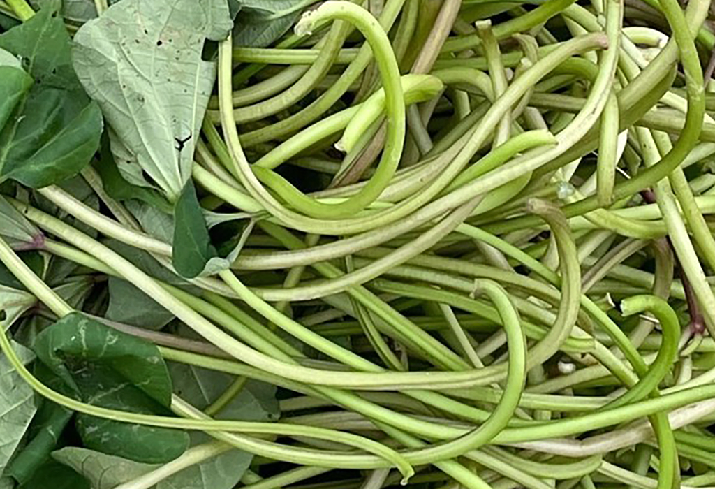 고구마줄기는 고구마 식물의 지상부 줄기로, 녹색의 긴 덩굴 모양을 하고 있습니다. 고구마의 잎과 함께 '고구마 순'이라고도 불리는 이 부위는 오래전부터 아시아 여러 국가에서 식용으로 활용되어 왔습니다. 특히 한국, 중국, 일본, 베트남 등에서는 고구마줄기를 다양한 요리에 사용하며, 영양가 있는 식재료로 인정받아 왔습니다. 고구마줄기는 부드러운 질감과 독특한 맛을 가지고 있어, 볶음, 무침, 국 등 다양한 요리에 활용되며, 최근에는 건강식품으로서의 가치도 주목받고 있습니다.