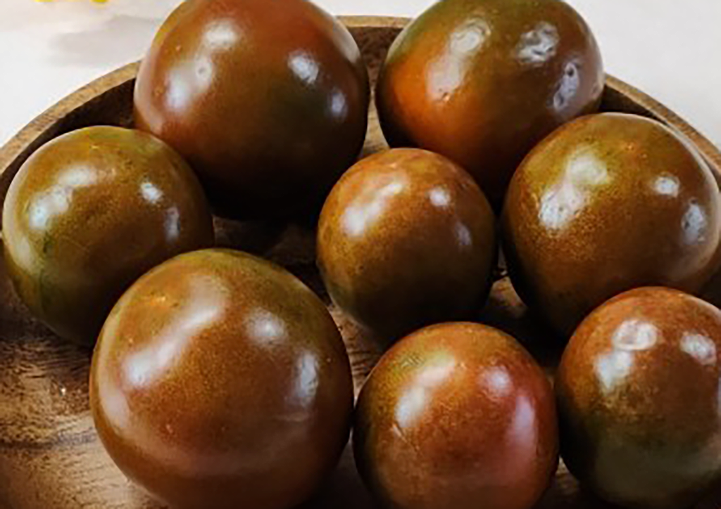 흑토마토는 일반 토마토의 변종으로, 짙은 자주색에서 거의 검은색에 가까운 외관을 가지고 있습니다. 이러한 독특한 색상은 안토시아닌이라는 색소 물질 때문인데, 이는 강력한 항산화 효과를 지닌 것으로 알려져 있습니다. 흑토마토는 일반 토마토에 비해 더 깊고 풍부한 맛을 가지고 있어, 요리에 사용될 때 특별한 풍미를 더해줍니다. 크기는 일반 토마토와 비슷하거나 약간 작은 편이며, 과육은 진한 붉은색을 띠고 있습니다. 이러한 특징들로 인해 흑토마토는 최근 건강식품으로서의 가치뿐만 아니라 요리의 재료로서도 높은 인기를 얻고 있습니다.
