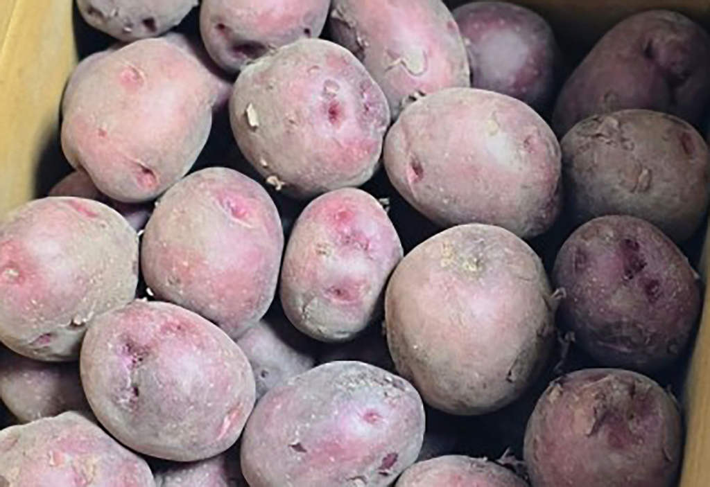 홍감자는 일반 감자의 변종으로, 껍질과 속살이 붉은 색을 띠는 것이 특징입니다. 이 독특한 색깔은 안토시아닌이라는 색소 물질 때문인데, 이는 강력한 항산화 효과를 가진 것으로 알려져 있습니다. 홍감자는 일반 감자에 비해 영양가가 더 높고 건강에 이로운 성분들을 더 많이 함유하고 있어 '슈퍼 푸드'로 불리기도 합니다. 크기와 모양은 일반 감자와 비슷하지만, 때로는 더 작고 불규칙한 형태를 가질 수 있습니다. 맛은 일반 감자보다 약간 더 달콤하고 견과류 같은 풍미가 있어 요리에 다양하게 활용될 수 있습니다.
