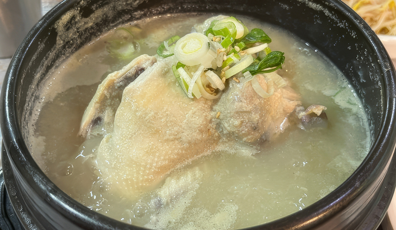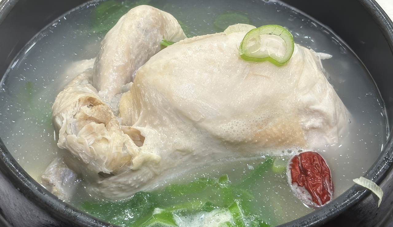 삼계탕은 한국의 대표적인 보양식 중 하나로, 어린 닭의 배 속에 찹쌀, 마늘, 대추, 인삼 등을 넣고 오랜 시간 푹 끓여낸 음식입니다. 이 음식의 이름은 '삼'(蔘, 인삼), '계'(鷄, 닭), '탕'(湯, 국)이라는 세 글자의 조합으로, 인삼이 들어간 닭국물이라는 의미를 담고 있습니다. 삼계탕은 특히 복날에 많이 먹는 음식으로 알려져 있는데, 이는 더위로 인해 떨어진 체력을 보충하고 기력을 회복하는 데 도움이 된다고 여겨지기 때문입니다. 삼계탕의 주재료인 닭고기는 단백질이 풍부하고 소화가 잘 되며, 인삼은 면역력 강화와 피로 회복에 효과적인 것으로 알려져 있어, 이 두 가지 주요 재료의 조합이 삼계탕의 보양 효과를 더욱 높이는 것으로 여겨집니다.